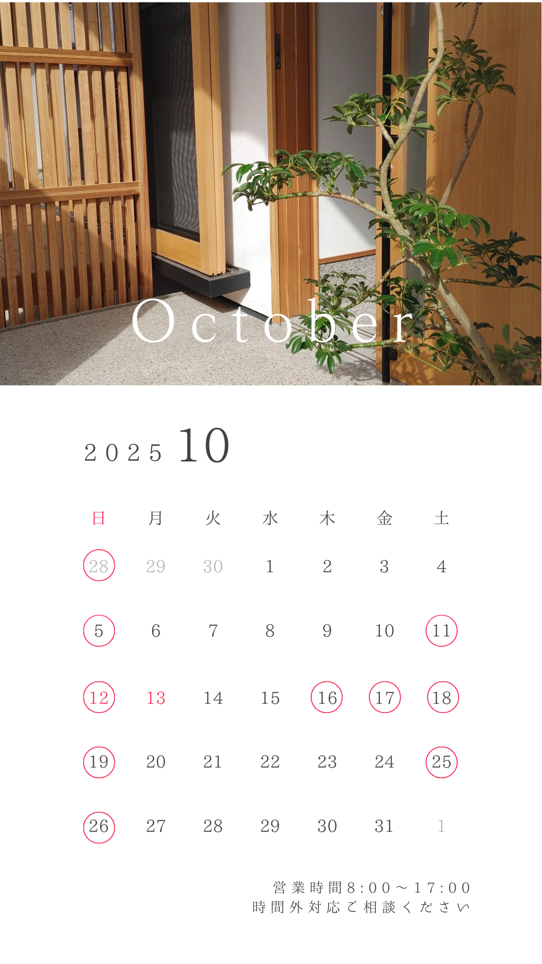 今月の営業時間は上記カレンダーの通りです。地方祭により変則的にお休みを頂いております。